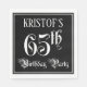This fancy and opulent birthday-themed paper napkin design features a customizable name and the message “65th Birthday Party”. The large number “65th” and the words “Birthday Party” are in elaborate script-style text, and the background is colored black by default (although it can be customized). Elegant, opulent paper napkins like this might be useful at a birthday celebration being held to celebrate somebody’s 65th birthday. [~Z0000563]