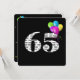 Bold black and white text on black background with colourful party balloons for 65th birthday party invite.