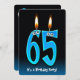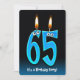Aqua and blue gradient background with eyeballs on candles for 65th Birthday party invitation.
