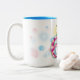 Funky, vintage-modern, carnival, coloured happy birthday mug with hand drawn numeric candles celebrating 65 something years.