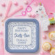 This unique numeric design features a blue and white random number pattern with the milestone number 65 displayed in various sizes and angles. A white rounded square serves as the centre for your text, surrounded by blue and white elements.