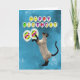 A playful siamese cat chasing balloons. A great way for a cat lover to send a birthday card.