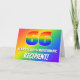 The front of this fun and upbeat birthday greeting card design features a large number “66” with a multicolored rainbow spectrum inspired gradient pattern, along with the message “HAPPY 66th BIRTHDAY,”, and a customisable recipient name. The background on the front also has a joyful rainbow spectrum gradient pattern. The inside features a personalised birthday greeting message, or could perhaps be cleared and left blank if a message is to be written by hand instead. A cheerful, personalised birthday greeting card like this might be a fun way to deliver birthday greetings to somebody who is celebrating their sixty-sixth birthday. [~Z0000585]