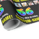 This bold and joyful birthday themed wrapping paper design features a large number “66“ having a vibrant rainbow spectrum inspired gradient pattern, plus the message “Happy 66th Birthday,“ and a custom recipient name. There are also photos that can be personalised, perhaps with photos of the recipient, the recipient’s family and friends, and/or the sender(s) of the gift. Wrapping paper like this might be used when wrapping gifts being given to somebody in celebration of their sixty-sixth birthday. (Photography © Storytree Studios, Stanford, CA.) [~Z0000670]