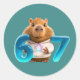 67 Capy – Cute Capybara Round Sticker Teal Edition