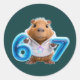 This little capybara doesn’t just hold a “67” – it brings that quiet, comforting kind of joy kids instantly connect with. With its cozy hoodie, softly glowing blue numbers and gentle expression, this sticker feels like a tiny companion your child will love to keep close – on school notebooks, water bottles, folders or their favorite everyday things.