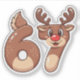 Whimsical cartoon reindeer forming the meme number 67 with warm browns and a red nose, ideal for kids Christmas apparel and festive gifts.