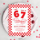 Celebrate turning seven with one of the biggest viral trends kids love! This fun 67 meme–inspired kids birthday party invitation features a bold red and white checkered background, the iconic “67” meme hands, and the playful saying “I was 6, now I’m 7.”