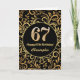 67th Birthday Black and Gold Floral Pattern Card