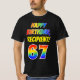 The front of this cheerful, bold, and colourful birthday-themed shirt design features a large number "67" and the message "HAPPY BIRTHDAY,", both coloured with a rainbow spectrum gradient inspired pattern, along with a bold yellow personalised name. Vibrant birthday-themed shirts like this might be fun for the attendees at somebody’s sixty seventh birthday party to wear. [~Z0000473]
