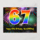 67th Birthday – Fun Fireworks Pattern + Rainbow 67 Postcard