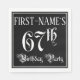 This fancy and ornate birthday paper napkin design features a customizable name and the message “67th Birthday Party”. The large number “67th” and the words “Birthday Party” are in luxurious script-style text, and the background is colored black by default (although it can be customized). Luxurious, elegant paper napkins like this might be useful at a birthday party/celebration being held in celebration of somebody’s sixty seventh birthday. [~Z0000563]