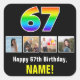 67th Birthday: Rainbow “67”; Custom Photos & Name Square Sticker