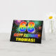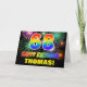 The front of this cheerful, colorful, and fun birthday themed greeting card design features a large number "68" and the message "HAPPY BIRTHDAY,", both colored with a rainbow spectrum gradient inspired pattern, along with a bold yellow personalized recipient name. The front also features a multicolored bursting celebratory fireworks inspired background pattern. The inside features an editable birthday greeting message, or could perhaps be cleared and left blank if a message is to be written by hand instead. A vibrant customizable birthday card like this might be a fun way to send a message celebrating somebody’s sixty eighth birthday. [~Z0000471]