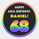 68th Birthday: Colourful Rainbow # 68, Custom Name Classic Round Sticker