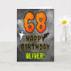 The front of this spooky and scary Halloween themed birthday greeting card design features a large number “68”. It also features the message “HAPPY BIRTHDAY,”, and a customisable name. There are also depictions of a ghost and a bat on the front. The inside features a personalised birthday greeting message, or could perhaps be cleared and left blank if a message is to be written by hand instead. A custom birthday card like this might be a fun way to send birthday wishes to somebody who is celebrating their sixty eighth birthday and who was also born on Halloween (October 31st). [~Z0000547]