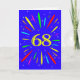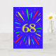 An explosive 68th birthday card! What a wonderful way to send birthday greetings. The number 68 in bright yellow with an explosion of bright colours and stars.