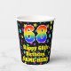 This joyful and colourful birthday paper cup design features a large number “68” with a rainbow spectrum gradient inspired pattern, along with the message “Happy 68th Birthday,”, and a customisable name. The background features a colourful star field inspired pattern. Vibrant, colourful paper cups like this might be fun to use at a birthday party/celebration being held to celebrate somebody’s sixty eighth birthday. [~Z0000540]