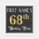 This luxurious and opulent birthday paper napkin design features an editable name and the message “68th Birthday Party”. The large number “68th” has an imitation/faux gold-inspired colouring pattern, the words “Birthday Party” are in ornate script-style text, and the background is coloured black by default (although it can be customised). Ornate, fancy paper napkins like this might be used at a birthday celebration/party being held in celebration of somebody’s sixty eighth birthday. [~Z0000565]