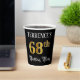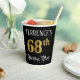 This luxurious and fancy birthday paper cup design features a personalised name and the message “68th Birthday Party”. The large number “68th” has an imitation/faux gold-inspired colouring pattern, the words “Birthday Party” are in opulent script-style text, and the background is coloured black by default (although it can be customised). Elegant, opulent paper cups like this might be useful to have at a birthday celebration/party being held to celebrate somebody’s 68th birthday. [~Z0000567]