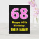 68th Birthday: Pink Stripes and Hearts "68" + Name Card