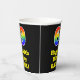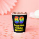 This colourful and fun birthday paper cup design features a large number “69” with a rainbow spectrum gradient inspired pattern, along with the message “Happy 69th Birthday,”, and a personalised name. The background is coloured black. Vibrant, colourful paper cups like this might be fun to use at a birthday celebration/party being held in celebration of somebody’s 69th birthday. [~Z0000537]