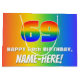 This exciting and cheerful birthday-themed giftbag design features a large number “69” having a colourful rainbow spectrum inspired gradient pattern. It also features the message “HAPPY 69th BIRTHDAY,”, and a personalised recipient name. The background also features a fun multicolored rainbow spectrum inspired gradient pattern. Personalised birthday themed gift bags like this might be a fun way to wrap gifts or presents being given to somebody who is celebrating their 69th birthday. [~Z0000577]