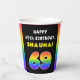 This fun and upbeat birthday-themed paper cup design features the number “69“ having a vibrant multicolored rainbow spectrum inspired gradient pattern, along with the message “HAPPY 69th BIRTHDAY,”, and an editable recipient name. Paper cups like this might be used at a party for somebody who is celebrating their sixty ninth birthday. [~Z0000639]