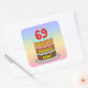 This colourful and upbeat birthday square sticker design features a cartoon-style depiction of a three-tier birthday cake having numeral-shaped candles on top showing the number “69“, along with the message “HAPPY 69TH BIRTHDAY,”, and a personalised recipient name. The background has a multicolored pastel rainbow spectrum inspired gradient pattern. Fun birthday themed stickers like these might be distributed or used at a birthday party in celebration of somebody’s sixty ninth birthday, or perhaps used when preparing invitations or wrapping presents/gifts for such an event. [~Z0000624]