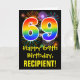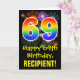 69th Birthday: Fun Fireworks Pattern + Rainbow 69 Card