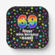 69th Birthday: Fun Stars Pattern and Rainbow “69” Paper Plate