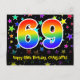 69th Birthday: Fun Stars Pattern, Rainbow 69, Name Postcard