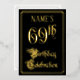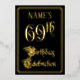The front of this fancy and opulent foil sixty-ninth birthday celebration/party invitation design features the message “69th Birthday Celebration” in luxurious script-style text. It also has an editable name. The background of the front is coloured black by default (although it can be customised to a different colour). The back features personalised details about the event, such as the date, time, location, and any other relevant information. Elegant, ornate, editable invitations like these might be used to invite guests to a birthday party being held in celebration of somebody’s sixty-ninth birthday. [~Z0000589]