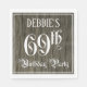 69th Birthday Party — Fancy Script, Faux Wood Look Napkin