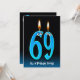 Aqua and blue gradient background with eyeballs on candles for 69th Birthday party invitation.