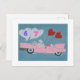 6 7 is in the clouds as this Poodle doggie is flying in the sky in a pink convertible classic car with heart balloons and roses in the back seat. A whimsical and fun card!
