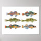 Poster from Original watercolor studies of 6 species of Freshwater Darters by nature artist, Thom Glace. top: Orange-Throated, Rainbow middle: Banded, Green-Sided Bottom,Candy, Variegated