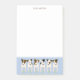 These Parson / Jack Russell Terriers Post-it® Notes for JRT lovers feature an illustrated lineup of six "Jacks" with various brown and black ear, head and body markings, each with an adorable head tilt and a tennis ball at her feet - the name and background colour, shown here in pale blue, are customisable - Jack Russell Terriers pattern design © katz_d_zynes 2019