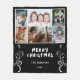 6 Photo Collage Foliage Black Merry Christmas Family Throw Pillow. 6 photos, Merry Christmas wish, family name and year. Lovely white foliage on a festive black background. Add 6 favourite photos and customise the text. Lovely yearly Christmas keepsake or gift for your family and friends.