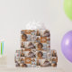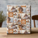 6 photos in an uneven pattern surround an opening for three lines of text. Use 2 square cropped photos and 4 vertical photos to make this work!