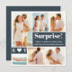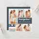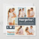 Everyone will love seeing your engagement photos. This 6-photo collage engagement announcement gives you a great opportunity to show them off. The two charcoal grey squares contain your text. All of the white text can be edited to create your unique spin. I added a playful Surprise! Then two lines of text in the large square in the smaller one I inserted your monograms separated by a heart.