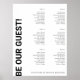 This customisable simple elegant 6 table wedding seating chart template will be a great addition to Wedding party decor. It features Be our guest written in bold black letters against white background. Text is fully editable, to make advanced changes, please select "Click to customise further" option under Personalise this template. Matching Wedding enclosure card, RSVP card and day-off stationery is also available, check out "Black and white Bold letters wedding stationery and decor" collection in my store Wowweds.