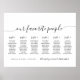 Minimalist Wedding Seating Chart Our favourite people for 60 guests. An elegant design in black and white or any background colour you choose. Just click the customise further link, shown under the text personalisation area on the right, and choose your custom colour background. This sign poster template makes it fast and easy to create stunning additions to your wedding décor. Signs can be decreased, there are many sizes to choose from, as well as options for custom framing and matting.