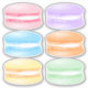 A set of 6 sweet macaron stickers in a variety of colours -- pink, lavender, blue, orange, gold & pastel green - by katz_d_zynes