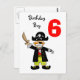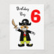 6 year old boy in a pirate costume, the background colour and the text are customisable. Personalise it!