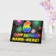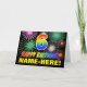 The front of this colorful, fun, and cheerful birthday themed greeting card design features a large number "6" and the message "HAPPY BIRTHDAY,", both colored with a rainbow spectrum gradient inspired pattern, along with a bold yellow custom recipient name. The front also features a multicolored bursting celebratory fireworks inspired background pattern. The inside features a personalized birthday greeting message, or could perhaps be cleared and left blank if a message is to be written by hand instead. An exciting birthday card like this might be a fun way to send birthday wishes to somebody who is celebrating their sixth birthday. [~Z0000471]