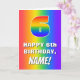 The front of this vibrant and fun birthday themed greeting card design features a large number “6” having a rainbow spectrum inspired gradient pattern. It also features the message “HAPPY 6th BIRTHDAY,”, and an editable name. The background of the front also has a cheerful multicolored rainbow spectrum gradient pattern. The inside has a customisable birthday greeting message, or could perhaps be cleared and left blank if a message is to be written by hand instead. A joyful, editable birthday greeting card like this might be used to celebrate somebody’s sixth birthday. [~Z0000570]