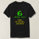 This nerdy and fun shirt design has the message "6 YEARS OLD!", the birthday greeting message "Happy 6th Birthday,", and a customisable name. The upper age digit and text have a geeky, green, pixelated, 8-bit graphics style look inspired by that of retro computer games and 1980s video games. The lower greeting message has a nerdy, yellow, retro digital computing inspired appearance. Shirts like this might be worn by the attendees at a birthday party being held to celebrate the 6th birthday of somebody who really likes old video games or retro computers. [~Z0000455]