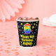 This joyful and colourful birthday-themed paper cup design features a large number “6” with a rainbow spectrum gradient inspired pattern, along with the message “Happy 6th Birthday,”, and an editable name. The background features a multicolored star field inspired pattern. Vibrant, colourful paper cups like this might be fun to have at a birthday party being held to celebrate somebody’s 6th birthday. [~Z0000540]