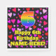 This cheerful and happy birthday-themed paper napkin design features a large number “6” with a rainbow spectrum gradient inspired pattern, along with the message “Happy 6th Birthday,”, and an editable name. The background features a pattern of heart shapes with colours like red, pink, and purple. Fun, happy paper napkins like this might be fun to have at a birthday party being held to celebrate somebody’s 6th birthday. [~Z0000550]